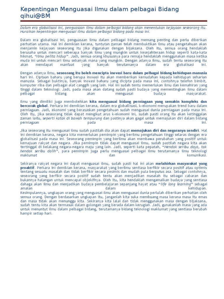 Sangatlah penting bagi seseorang yang ingin berjaya dalam apa jua bidang untuk menguasai bahasa ini dengan sebaik mungkin kerana bahasa ini secara tidak langsung dijadikan bahasa rasmi dalam pelbagai urusan yang. Ilmu Pengetahuan Islam menggalakkan manusia menuntut dan menguasai ilmu pengetahuan bukan sekadar ilmu tradisi tetapi juga ilmu moden bg pembangunan tamadun Islam yg unggul 6. Baca versi flipbook dari BUKU TEKS BAHASA MELAYU TINGKATAN 1.